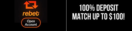 Rebet- Receive a 100% deposit match on your first deposit (up to $100)!