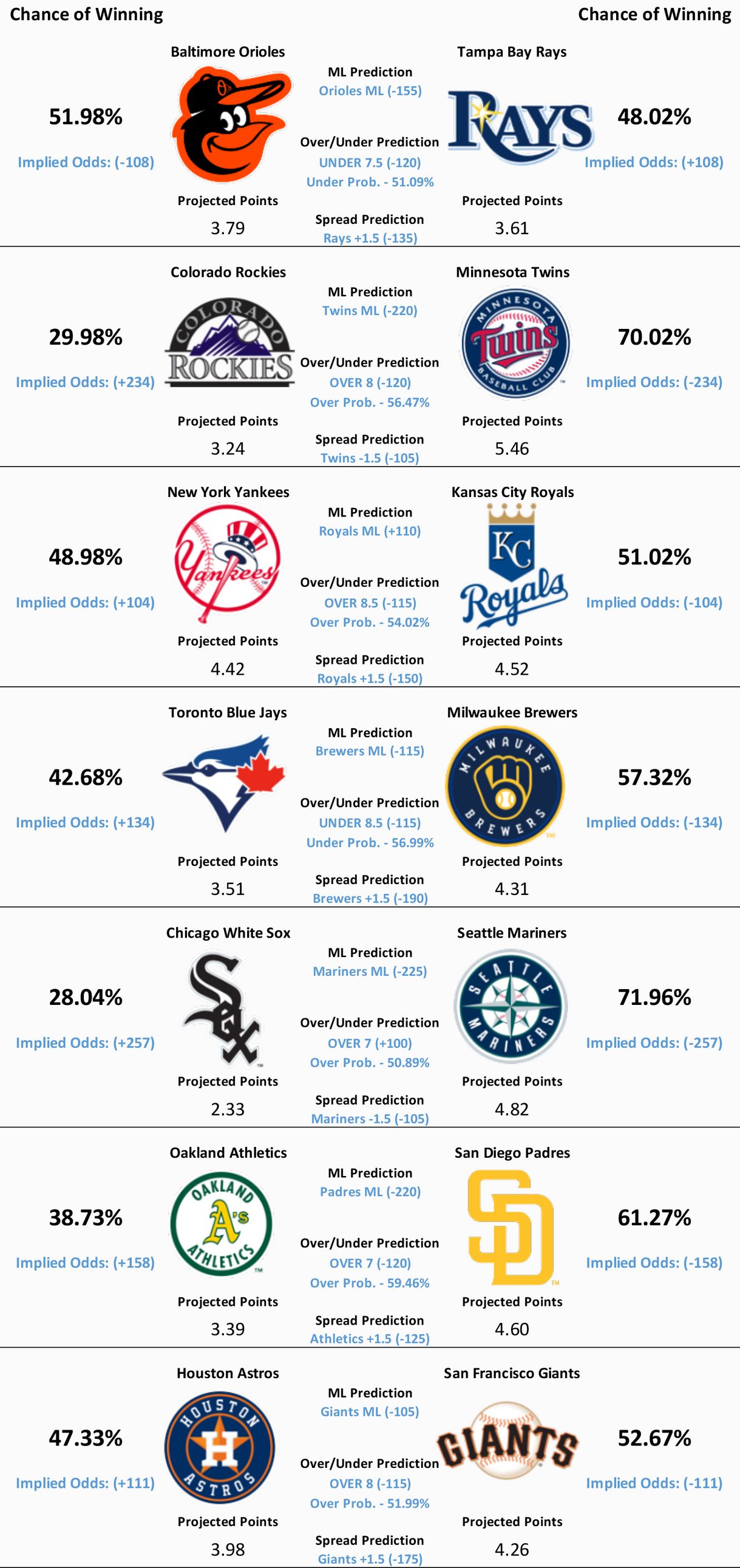 MLB Model Predictions, Analysis, Trends, and News