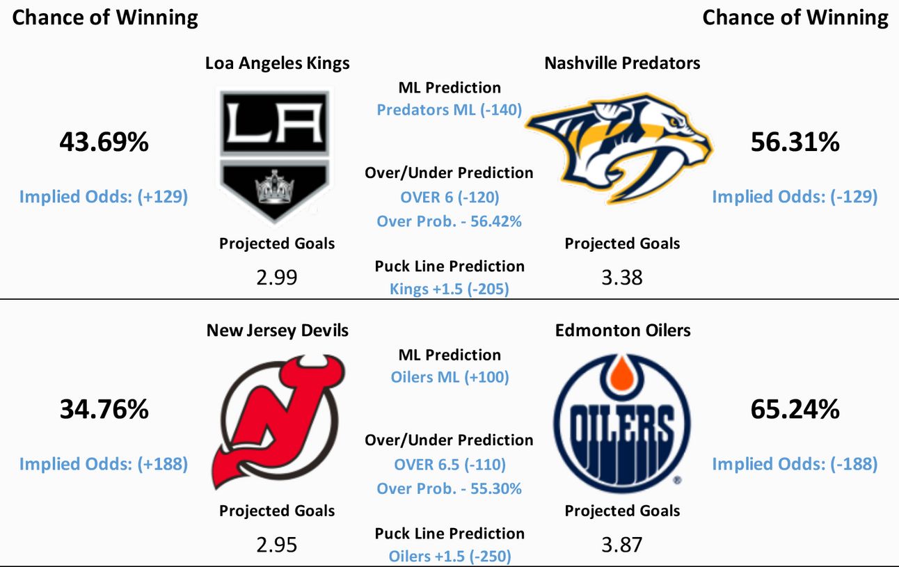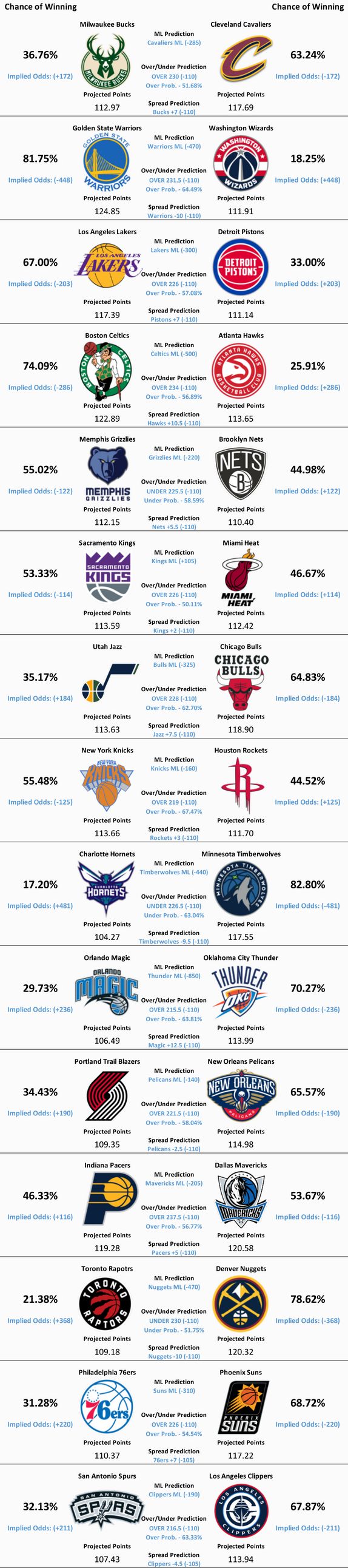 One NFL game is scheduled to take place today. Our model’s predictions for that matchup can be found below.