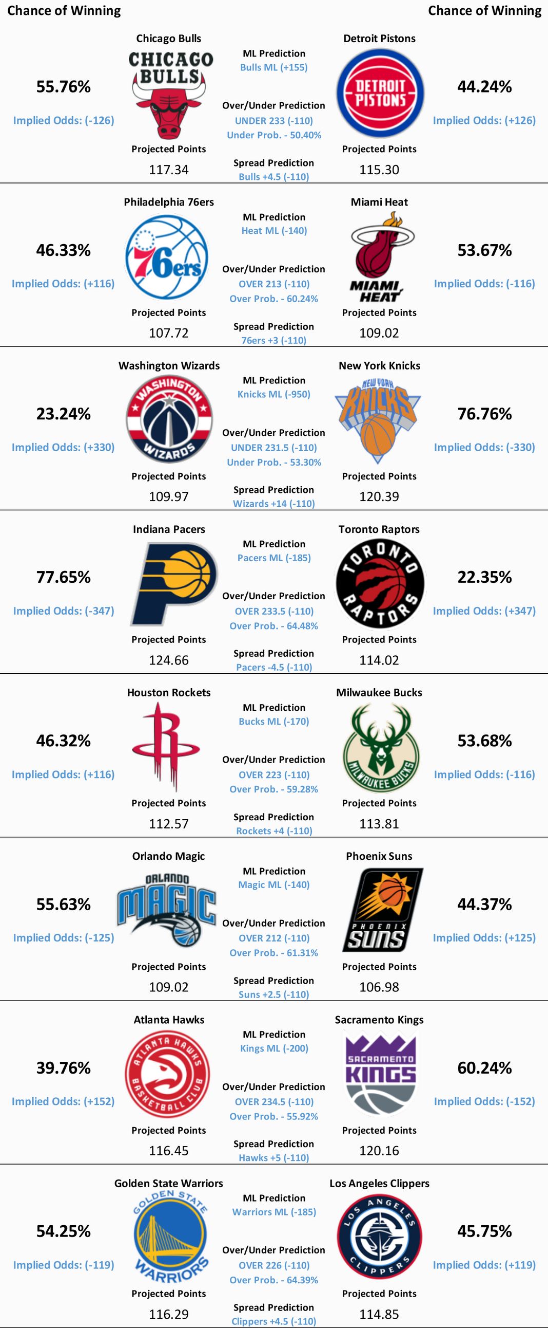 NBA Model Predictions🏀