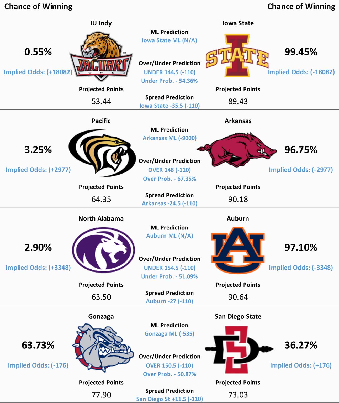 NCAAB Model Predictions- End of Newsletter