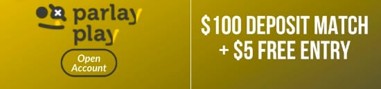 Parlay Play- Receive a 100% deposit match on your first deposit (up to $100) and receive an additional $5 free entry!