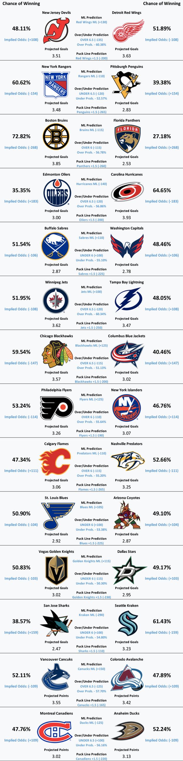 NHL Model Predictions, Analysis, Trends, and News