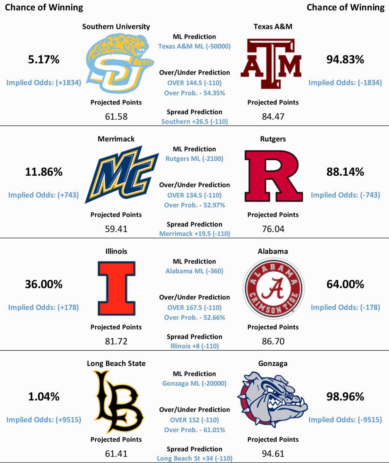 NCAAB Model Predictions- End of Newsletter