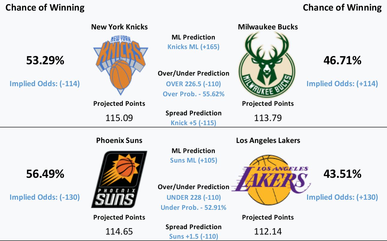 Model Predicts- Knicks ML, OVER 226.5, Knicks +5