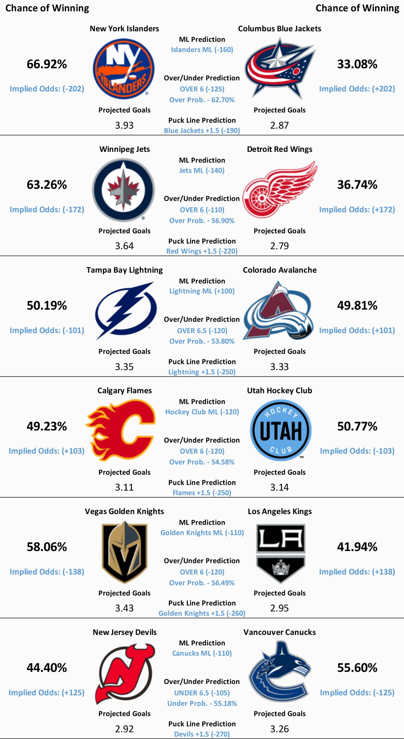 There were plenty of model predictions to go around yesterday across the NHL, with our model focusing in on one of those predictions in our Featured Matchup. That prediction went 0-1 overall, and you can see how the rest of the model performed below.