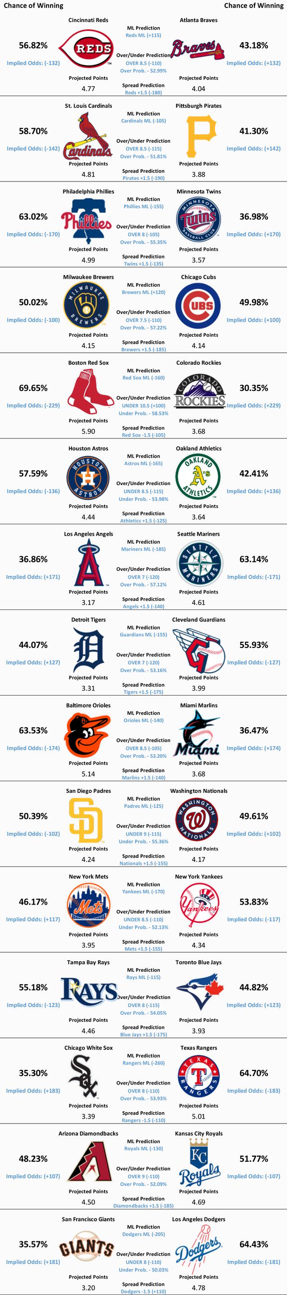 MLB Model Predictions, Analysis, Trends, and News