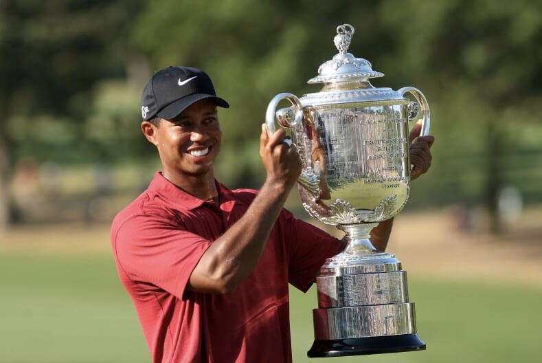 Tiger Woods celebrates his victory at the 2007 PGA Championship (PGA)