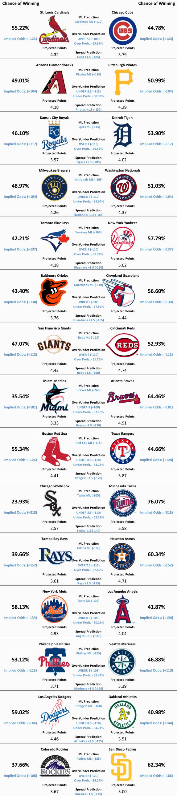MLB Model Predictions, Analysis, Trends, and News