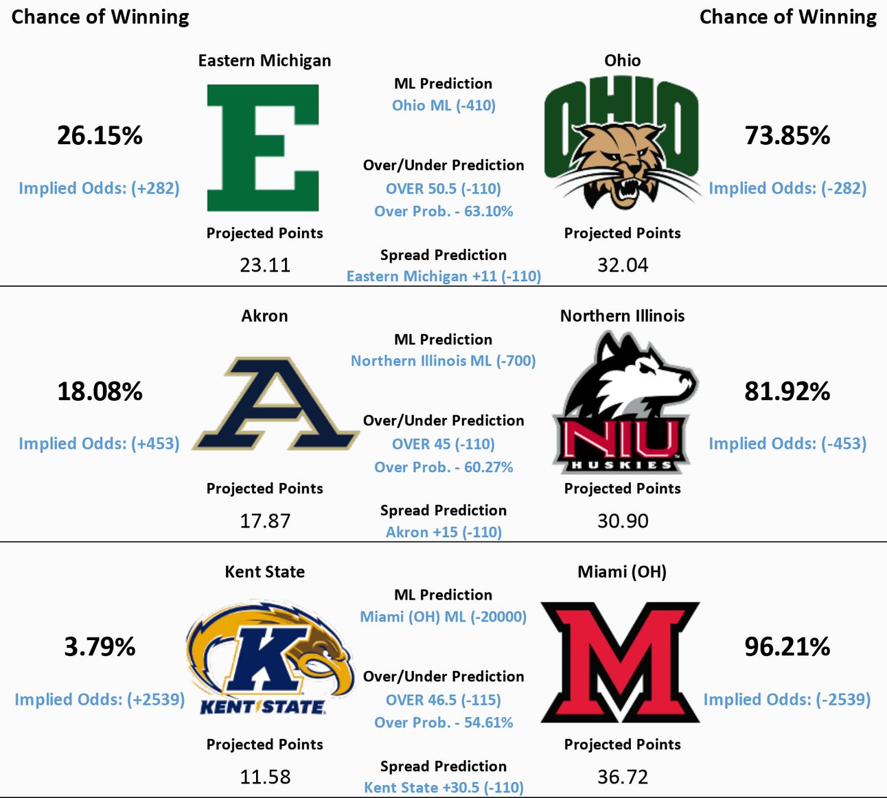 NCAAF Model Predictions🏈