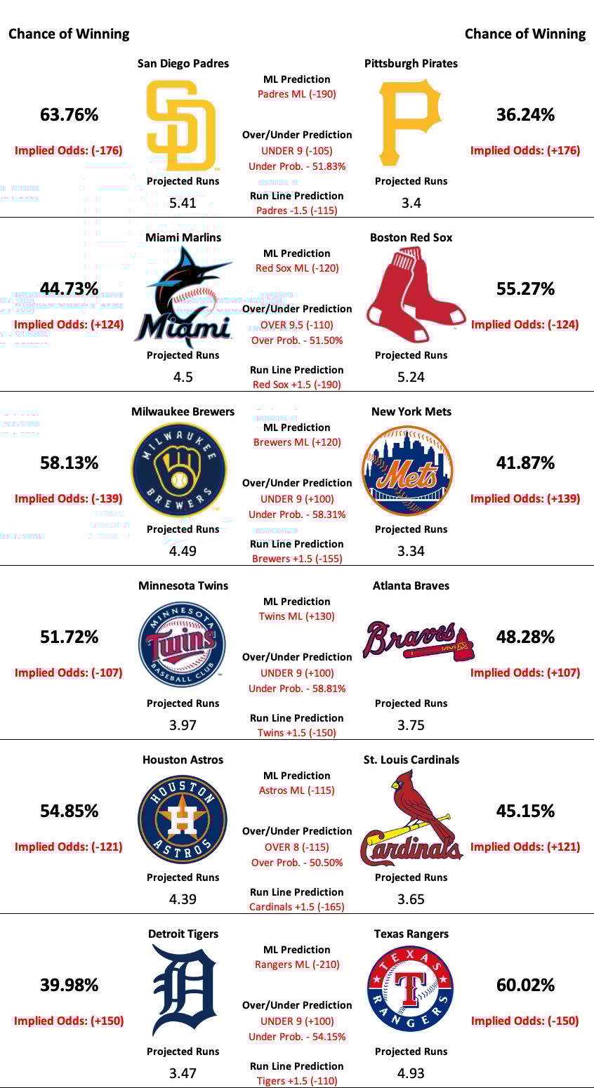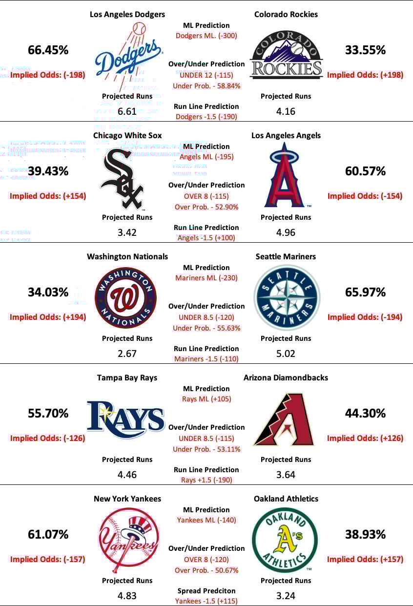MLB Model Predictions, Analysis, Trends, and News