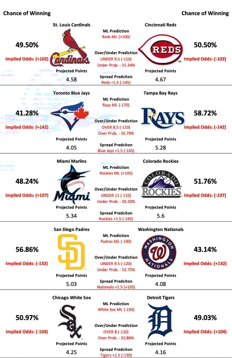MLB Model Predictions