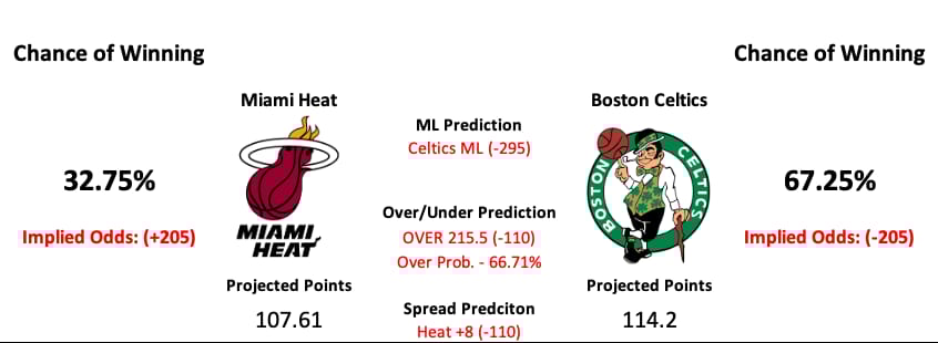 Model Predicts- Celtics ML, OVER 215.5 , Heat +8