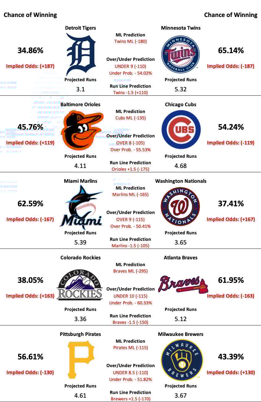 MLB Model Predictions, Analysis, Trends, and News
