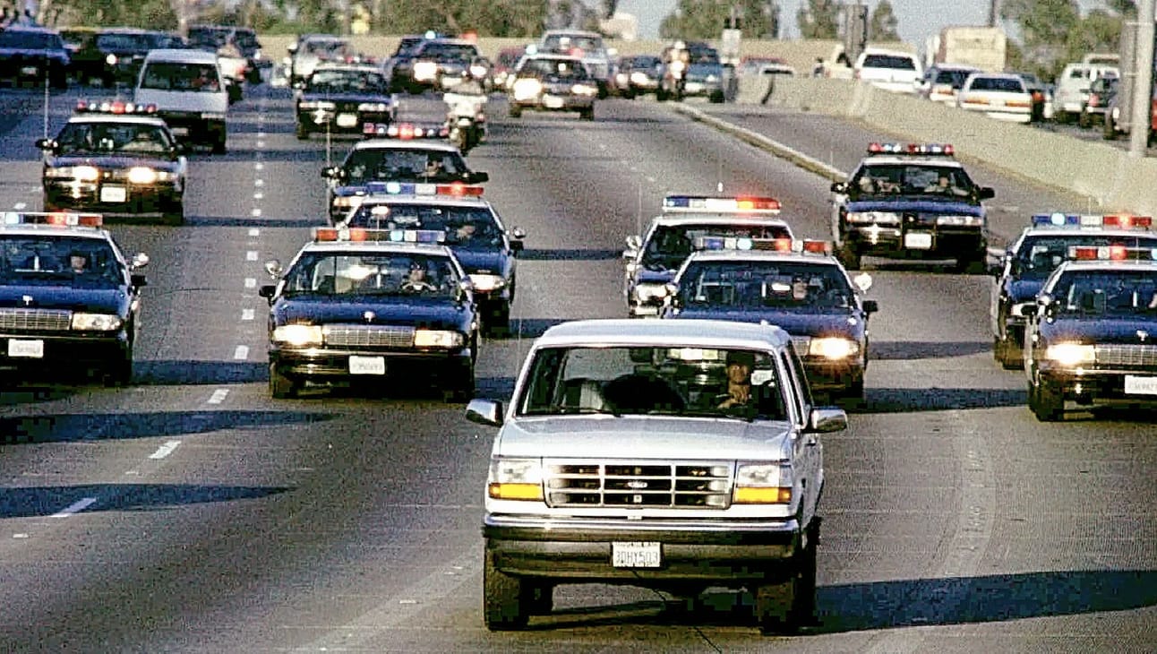 O.J. Simpson is chased by Los Angeles police after failing to turn himself in (Larry Ho/Los Angeles Times)