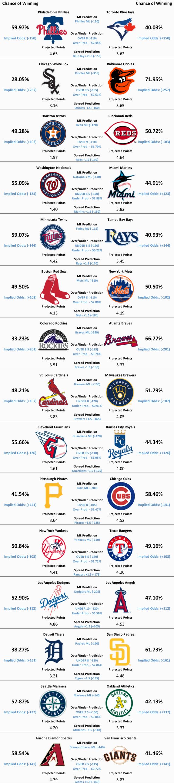 MLB Model Predictions, Analysis, Trends, and News