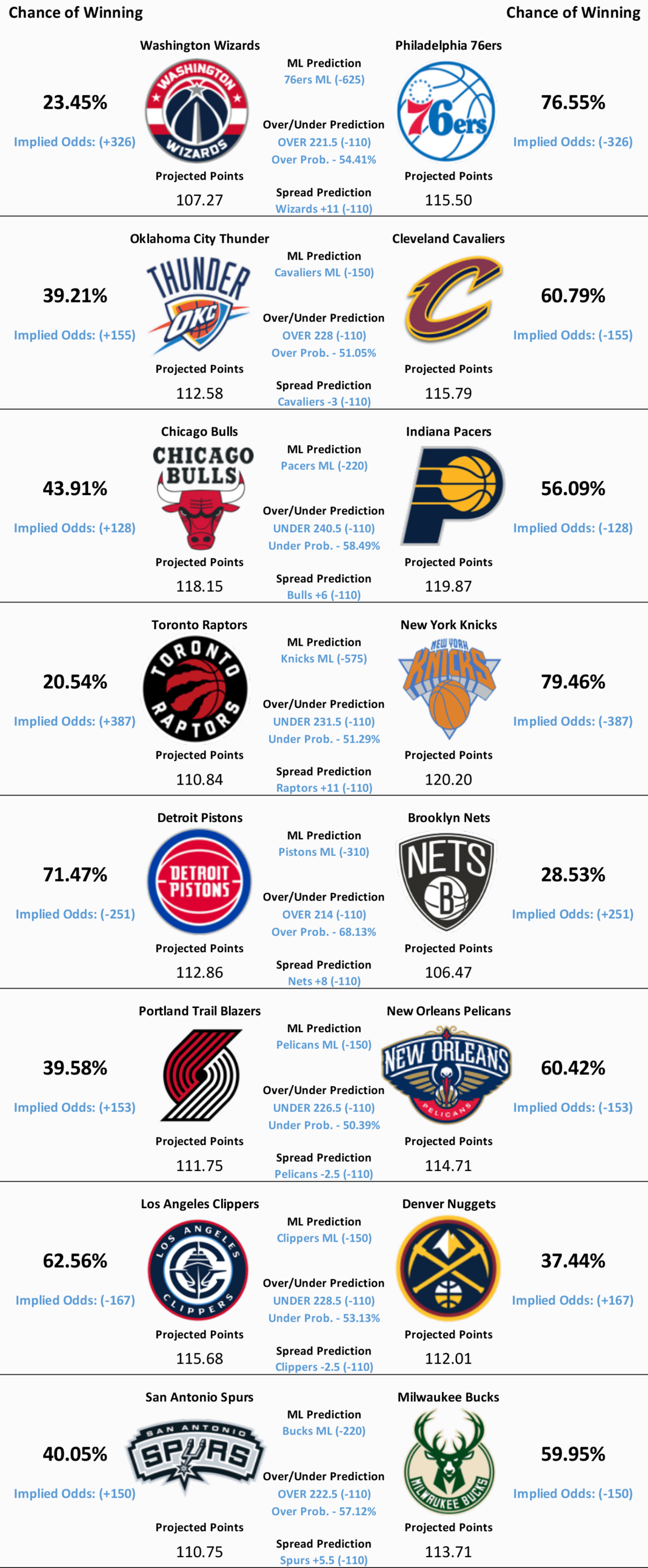NBA Model Predictions, Analysis, Trends, and News