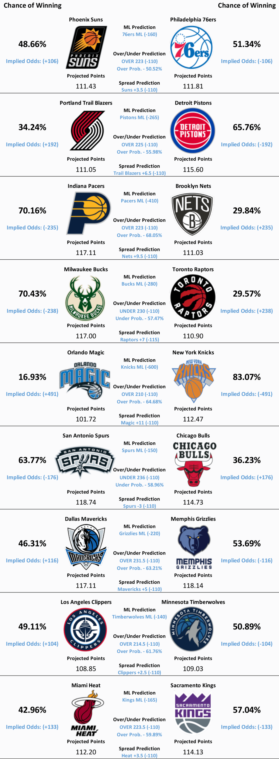 NBA Model Predictions, Analysis, Trends, and News