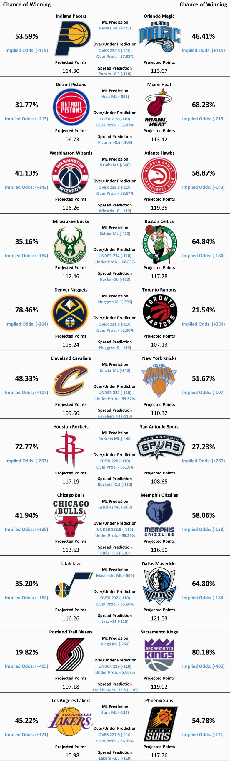 NBA Model Predictions🏀