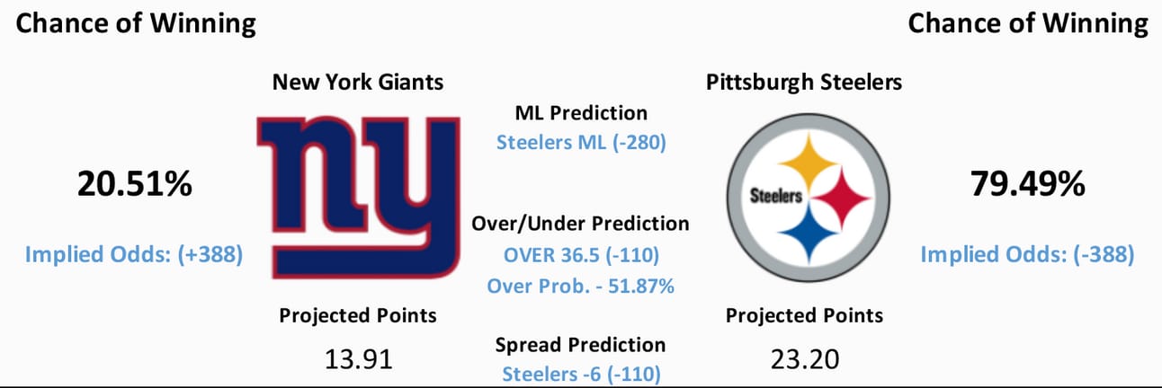 Model Predicts- Steelers ML, OVER 36.5, Steelers -6