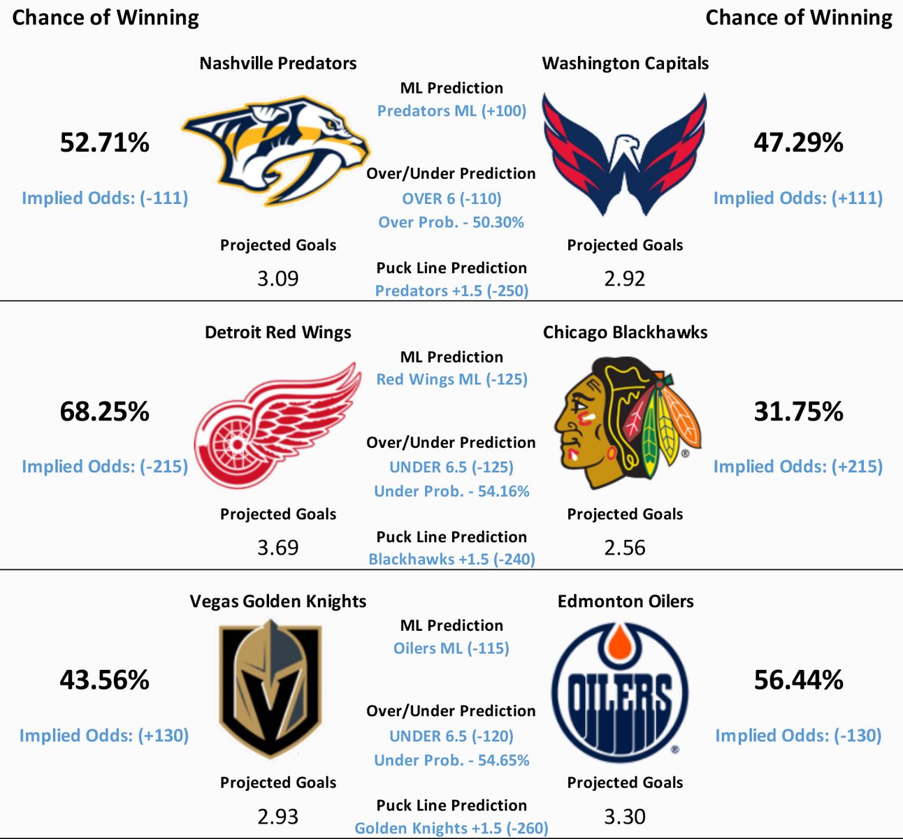 There were plenty of model predictions to go around yesterday across the NHL, with our model focusing in on one of those predictions in our Featured Matchup. That prediction went 1-0 overall, and you can see how the rest of the model performed below.
