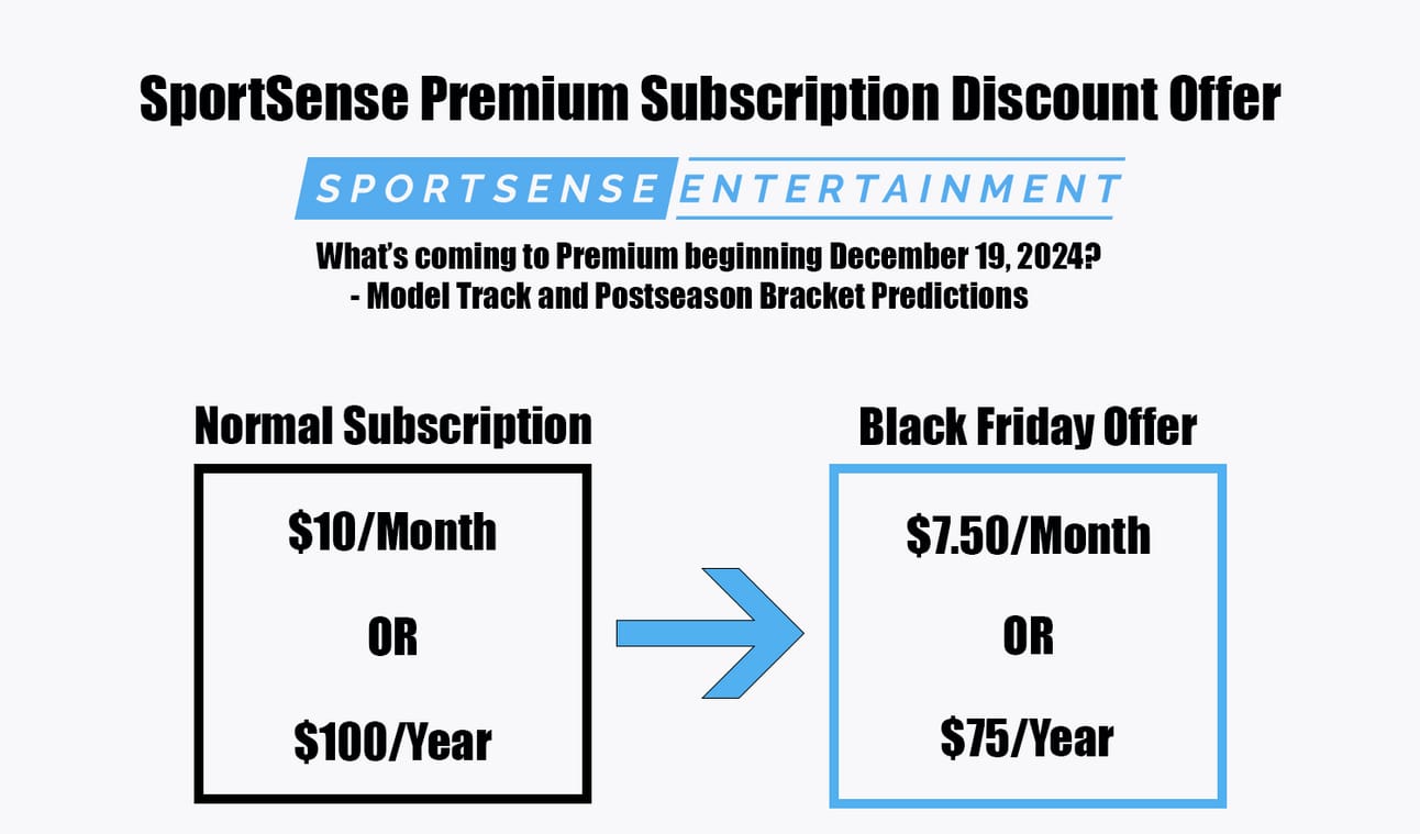 Our newsletter will be PACKED with model predictions and analysis for all Thanksgiving, Black Friday, and Saturday and Sunday’s games. Take advantage of our Black Friday sale so you don’t miss out on winning bets!