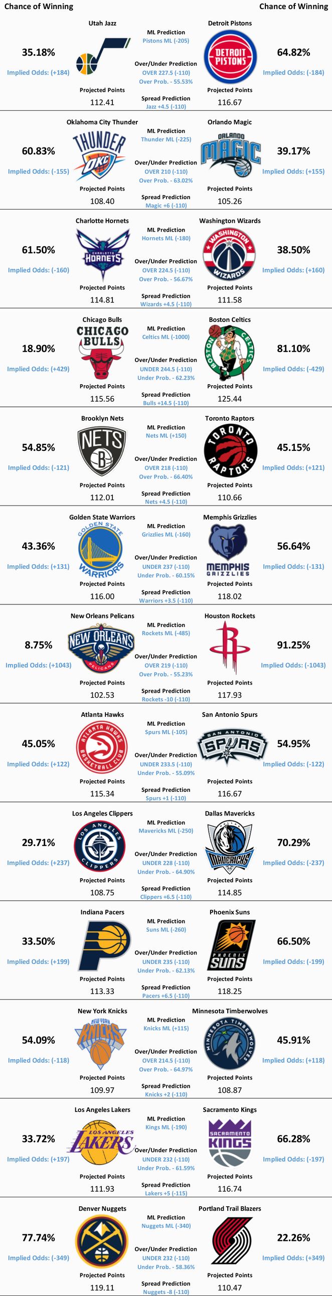 NBA Model Predictions, Analysis, Trends, and News